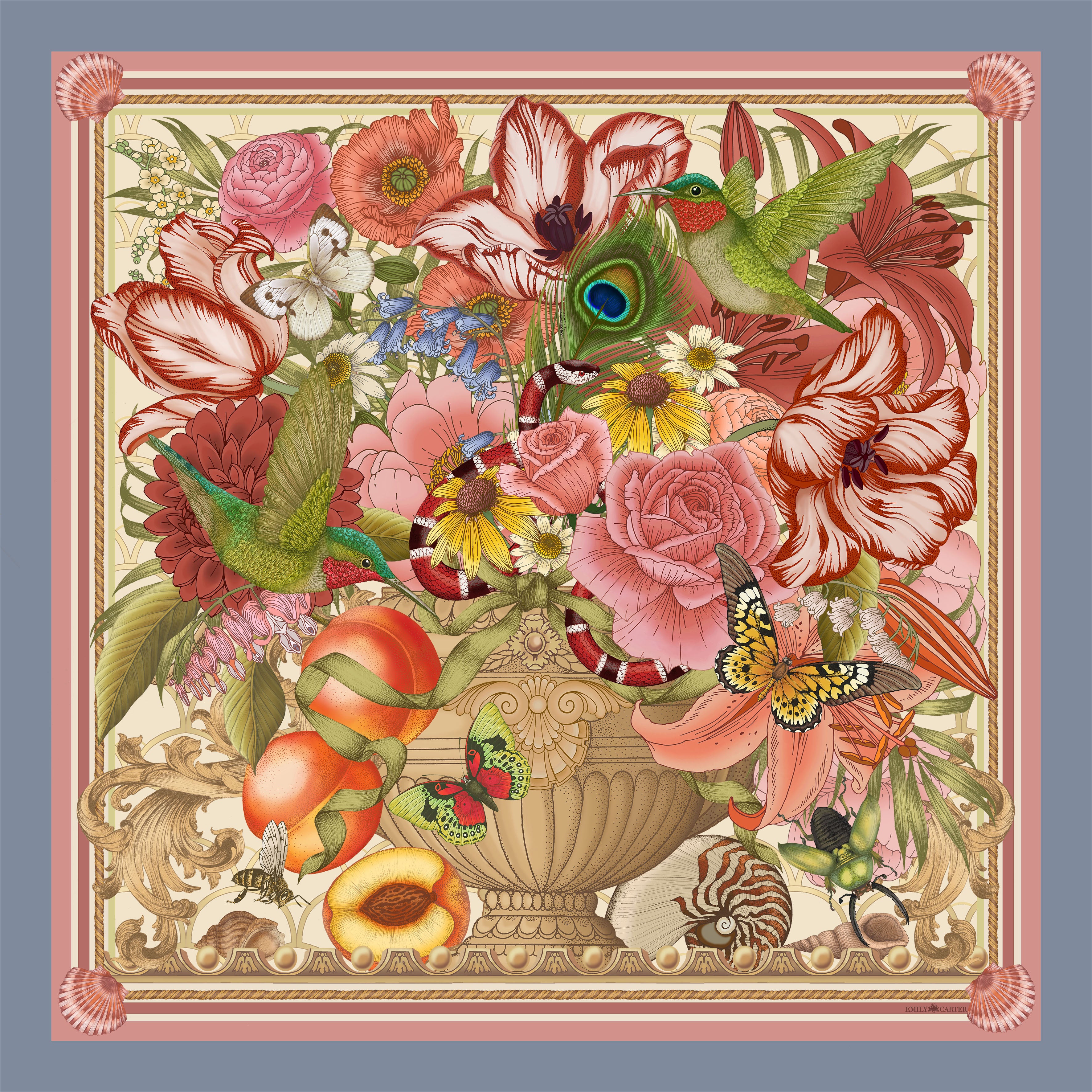 Emily works regularly on bespoke scarf designs for clients and corporates. Whether you are looking for a special gift for someone, a wedding present or gifting for a large event, we can personalise each item individually, and either work with one of our existing designs or create a design entirely bespoke which is unique to you.