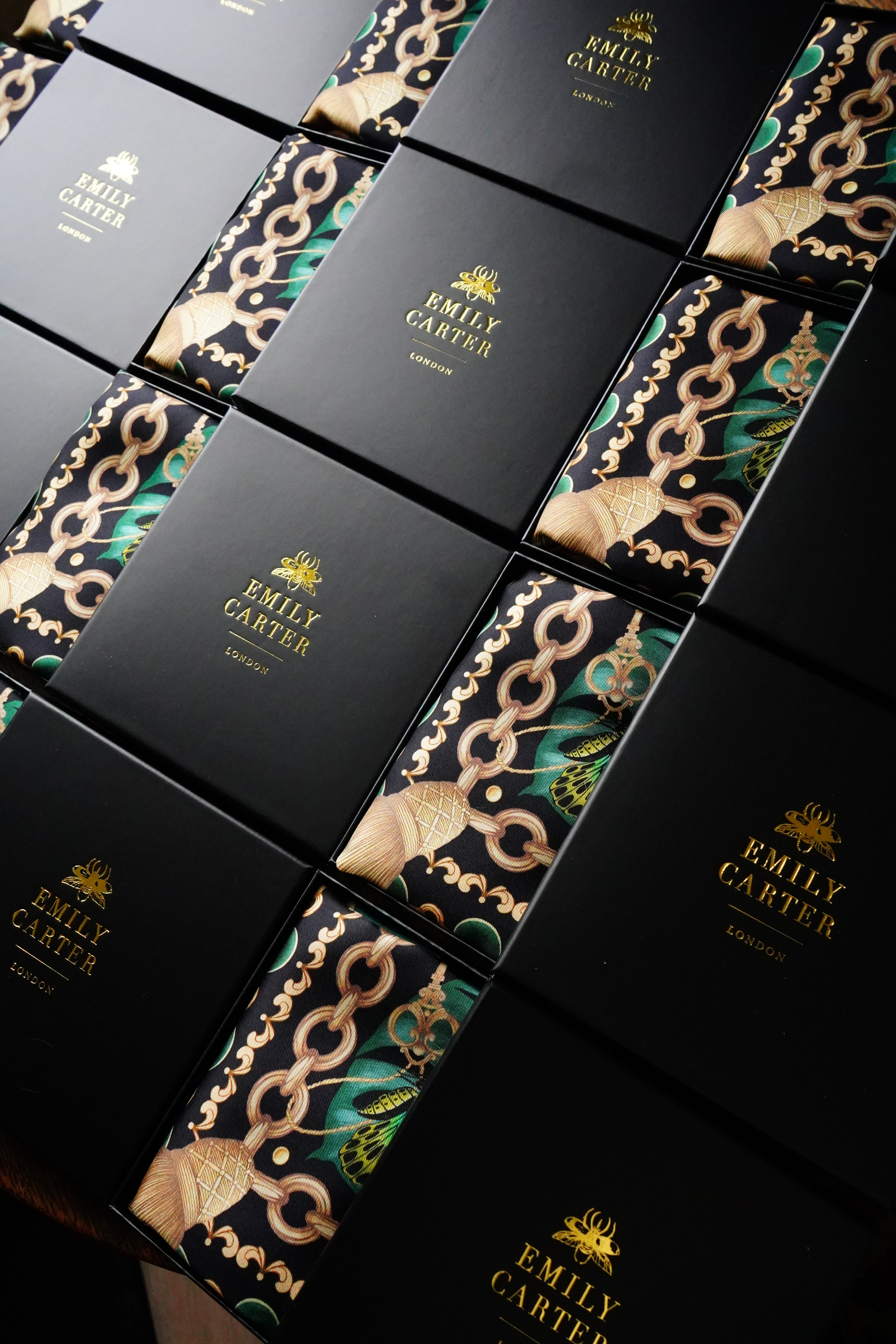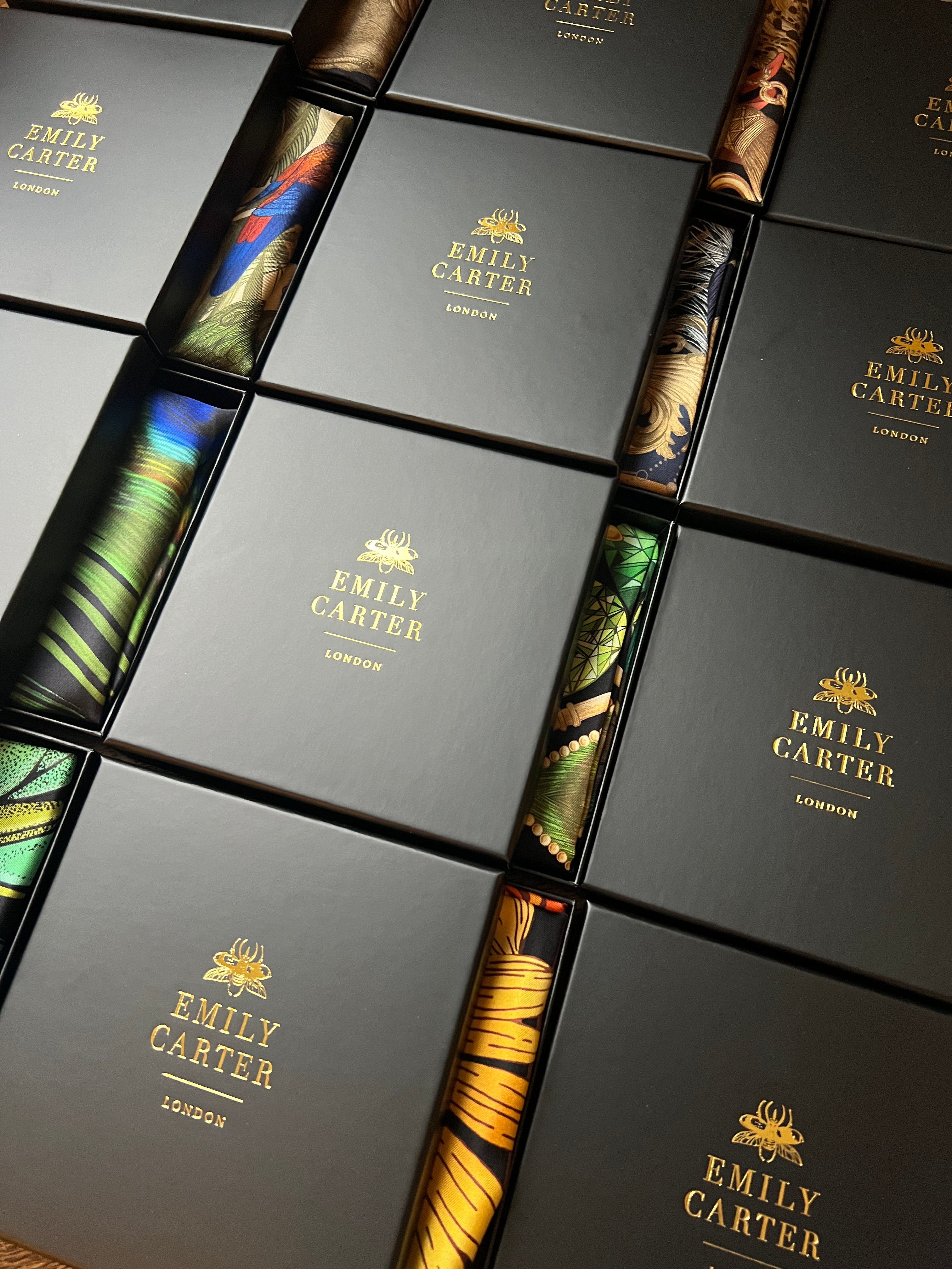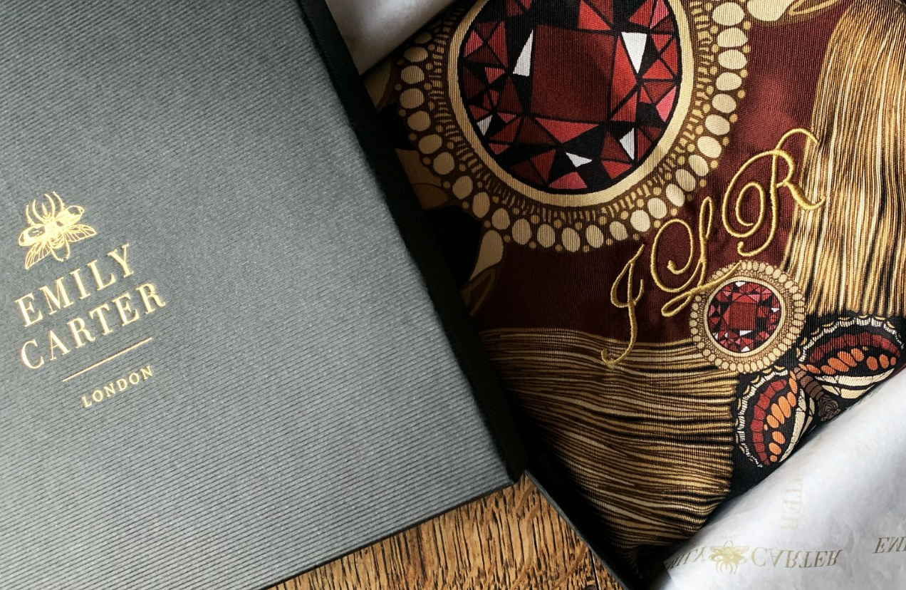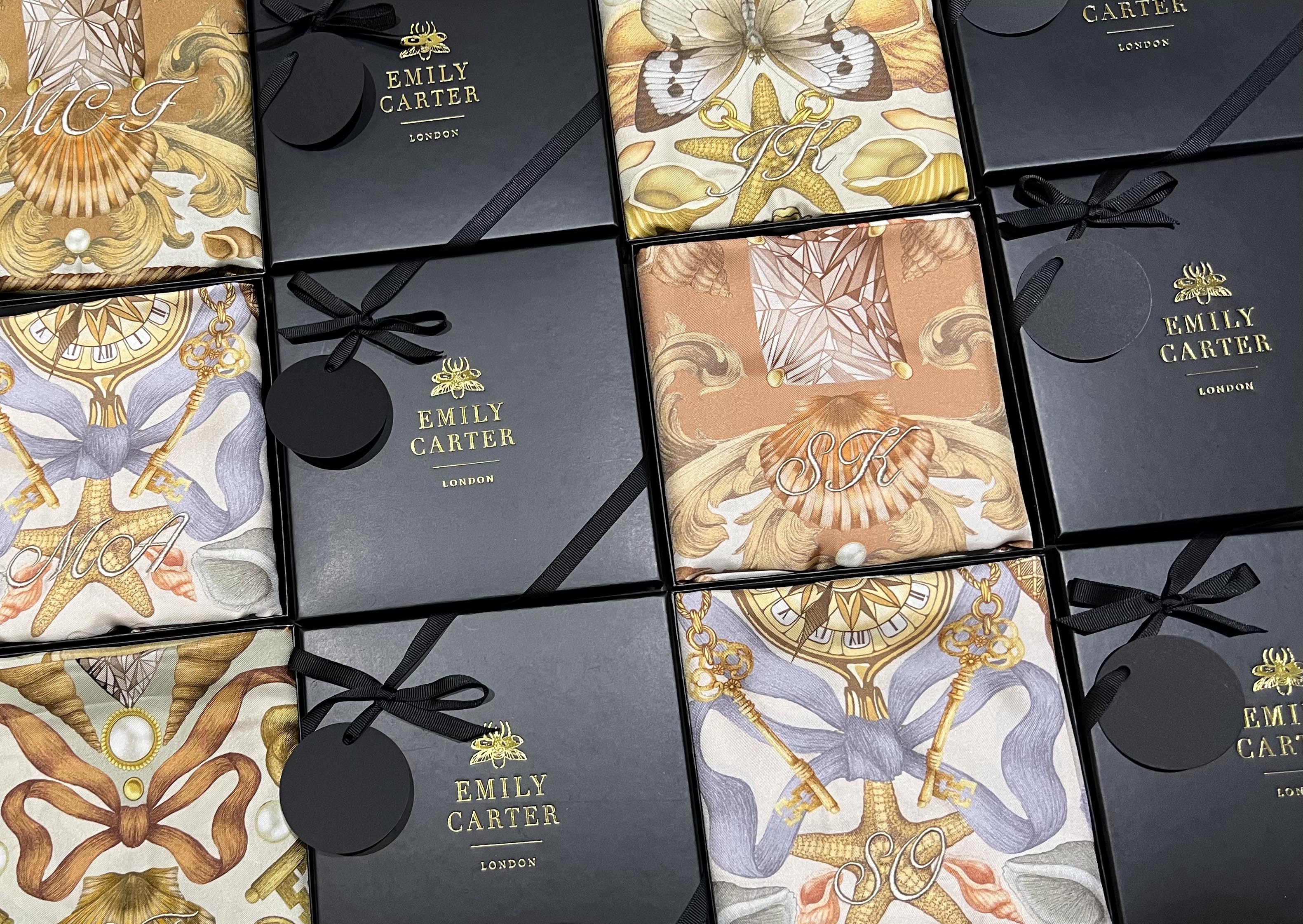 Emily works regularly on bespoke scarf designs for clients and corporates, and we now provide this as a service. Whether you are looking for a special gift for someone, a wedding present or gifting for a large event, we can personalise each item individually, and either work with one of our existing designs or create a design entirely bespoke which is unique to you.